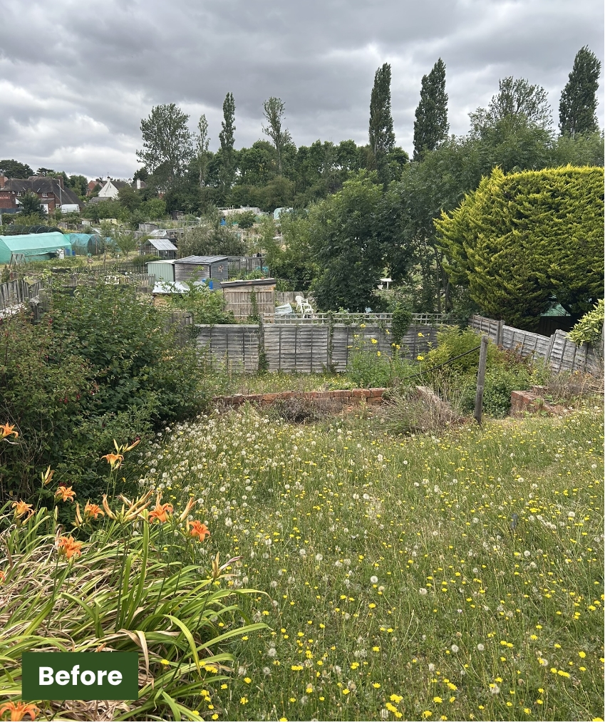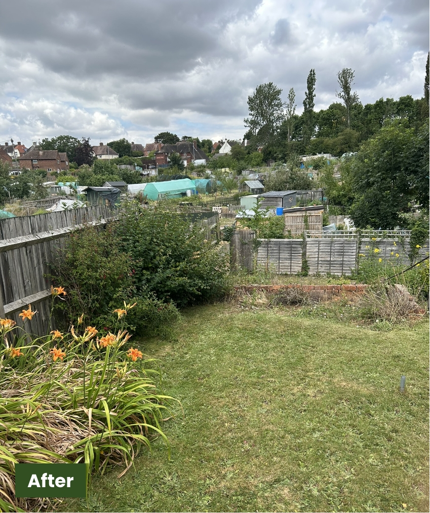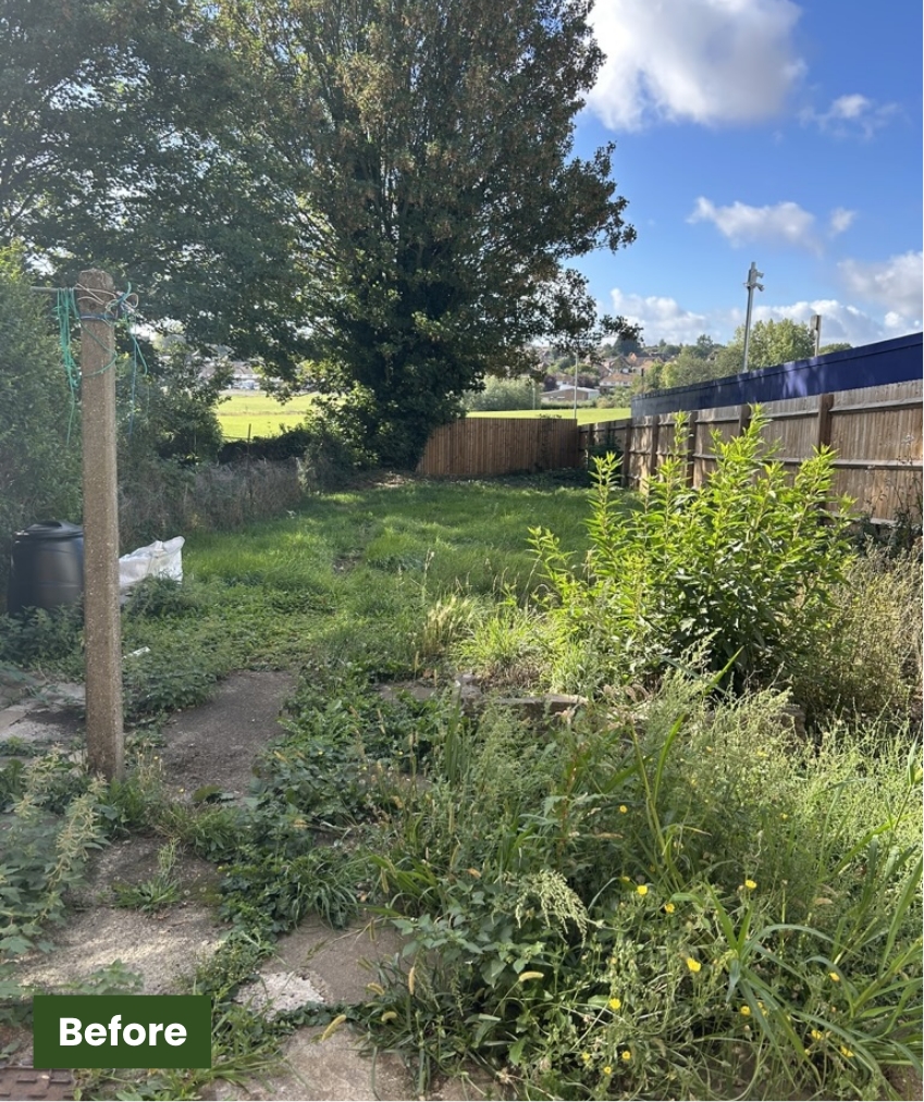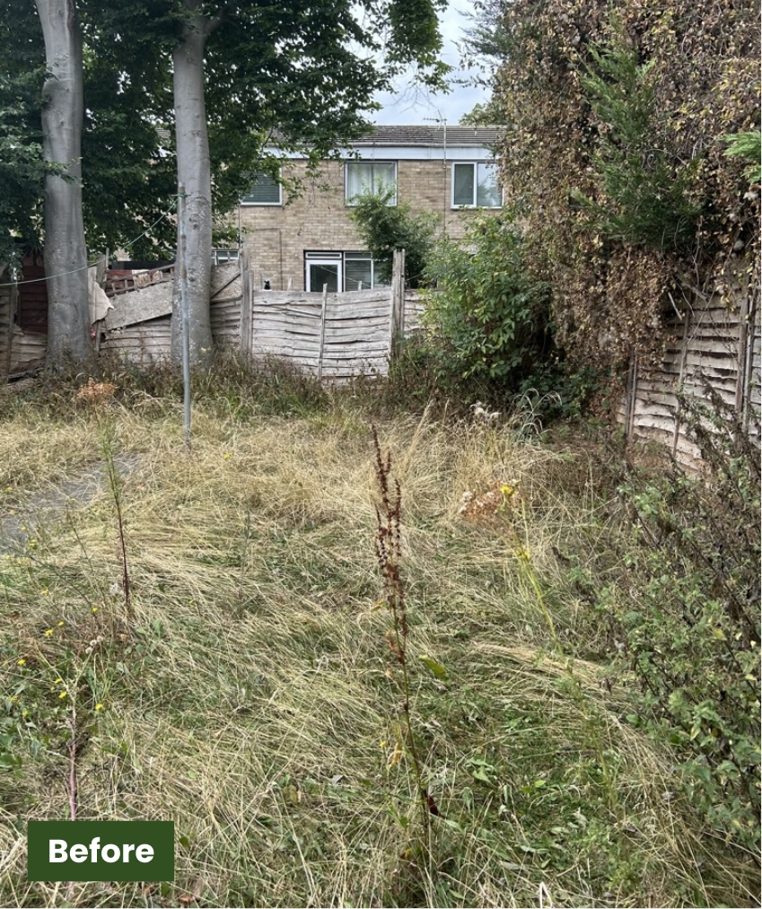 Clearing of overgrown grass, weeds and Autumn leaves.